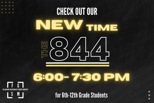 The 844 is our haven for students in the 6th-12th grade. They meet in the student building on Wednesday nights from 6:00- 7:30 pm!